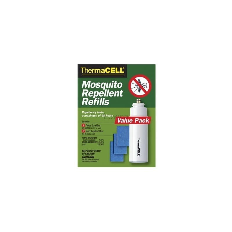 Wkład / Zestaw uzupełniający, zwierający 4 kartridże butanowe oraz 12 mat odstraszających owady i komary, pozwala na 48 godzinne, ciągłe działanie.